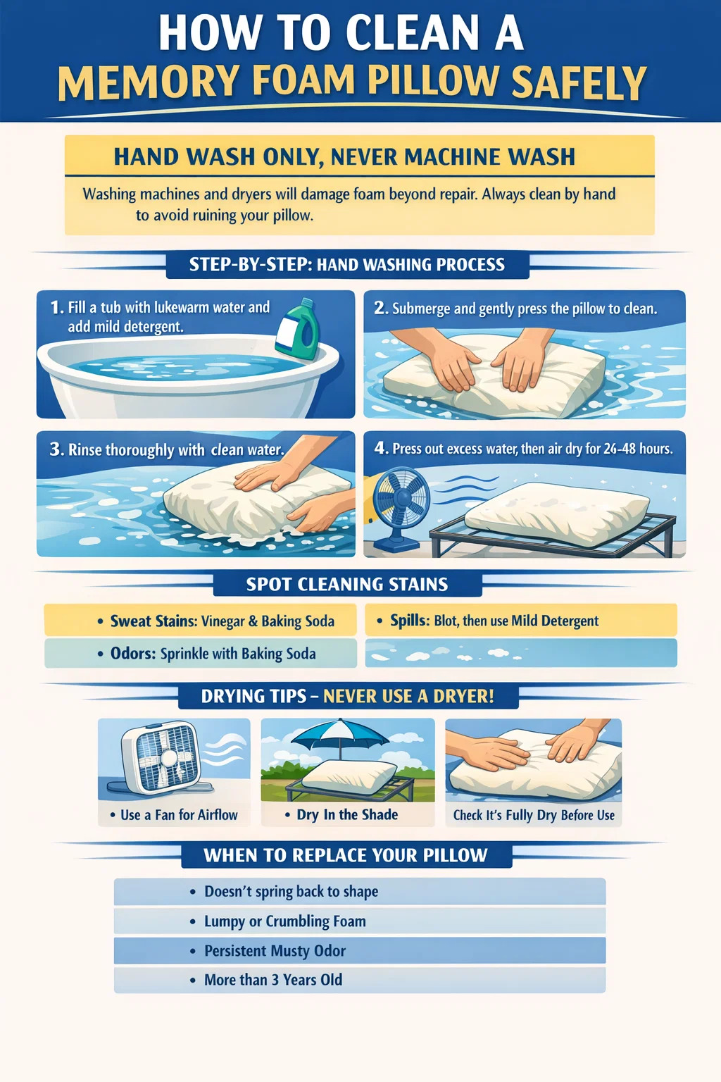 روش صحیح شستن دست ها با آب ولرم و مقدار کمی شوینده مایع ملایم است و به دنبال آن یک دوره طولانی مدت خشک شدن در هوا - معمولاً 24 تا 48 ساعت است. برای تمیز کردن لکه بین شستشوی کامل، مخلوطی از آب و سرکه سفید که با یک پارچه استفاده میشود، بدون اشباع کردن کف روی بیشتر لکهها موثر است. این راهنما هر سناریو را با جزئیات پوشش میدهد، از تازه کردن معمولی گرفته تا تمیز کردن عمیق بالش مموری فوم بسیار آلوده.
