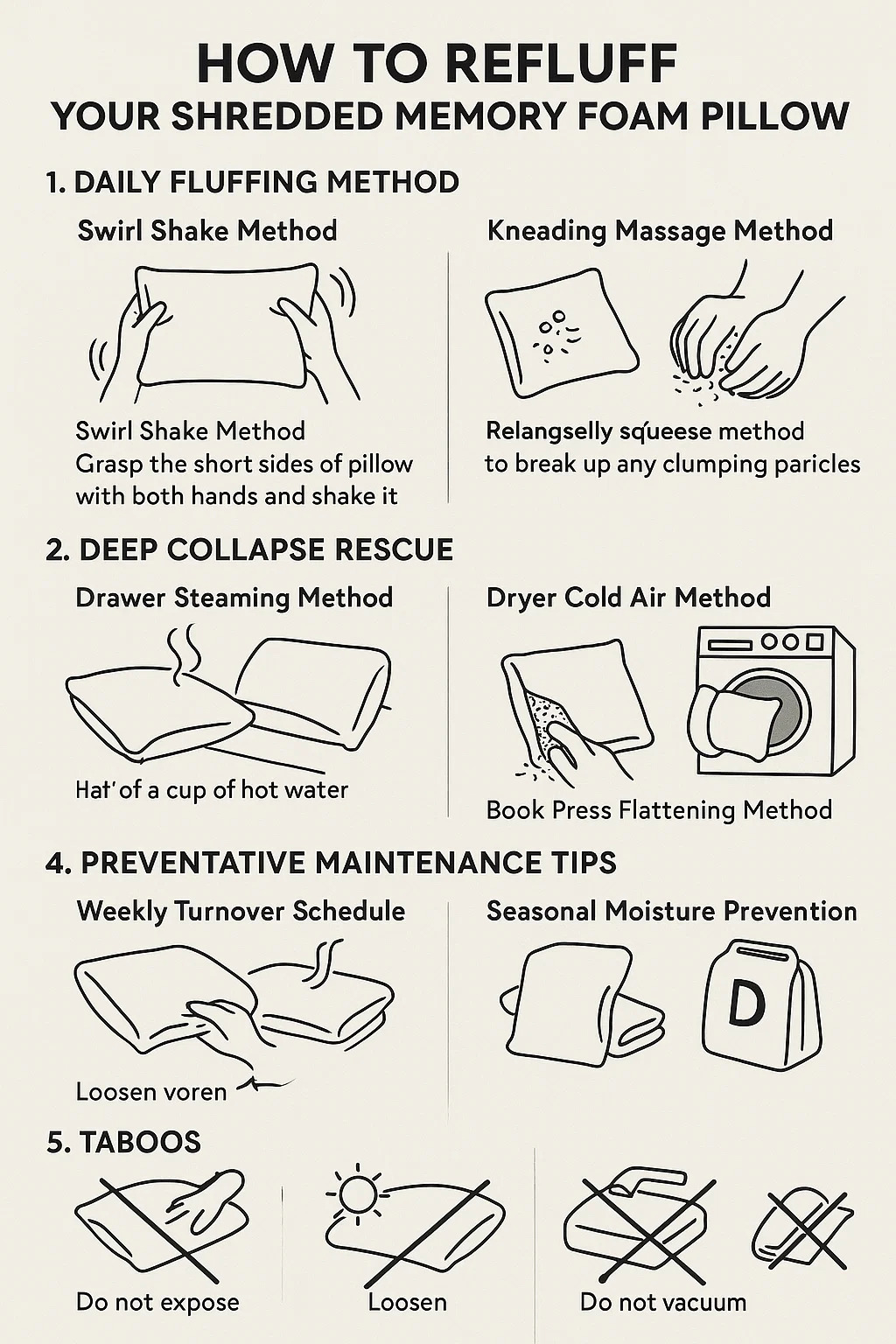 پیشگیری از رطوبت فصلی: در طول فصل بارانی ، بالش را در یک کیسه رطوبت گیر بپیچید و به مدت 2 ساعت ذخیره کنید (برای جلوگیری از جذب ذرات رطوبت و چسبندگی).